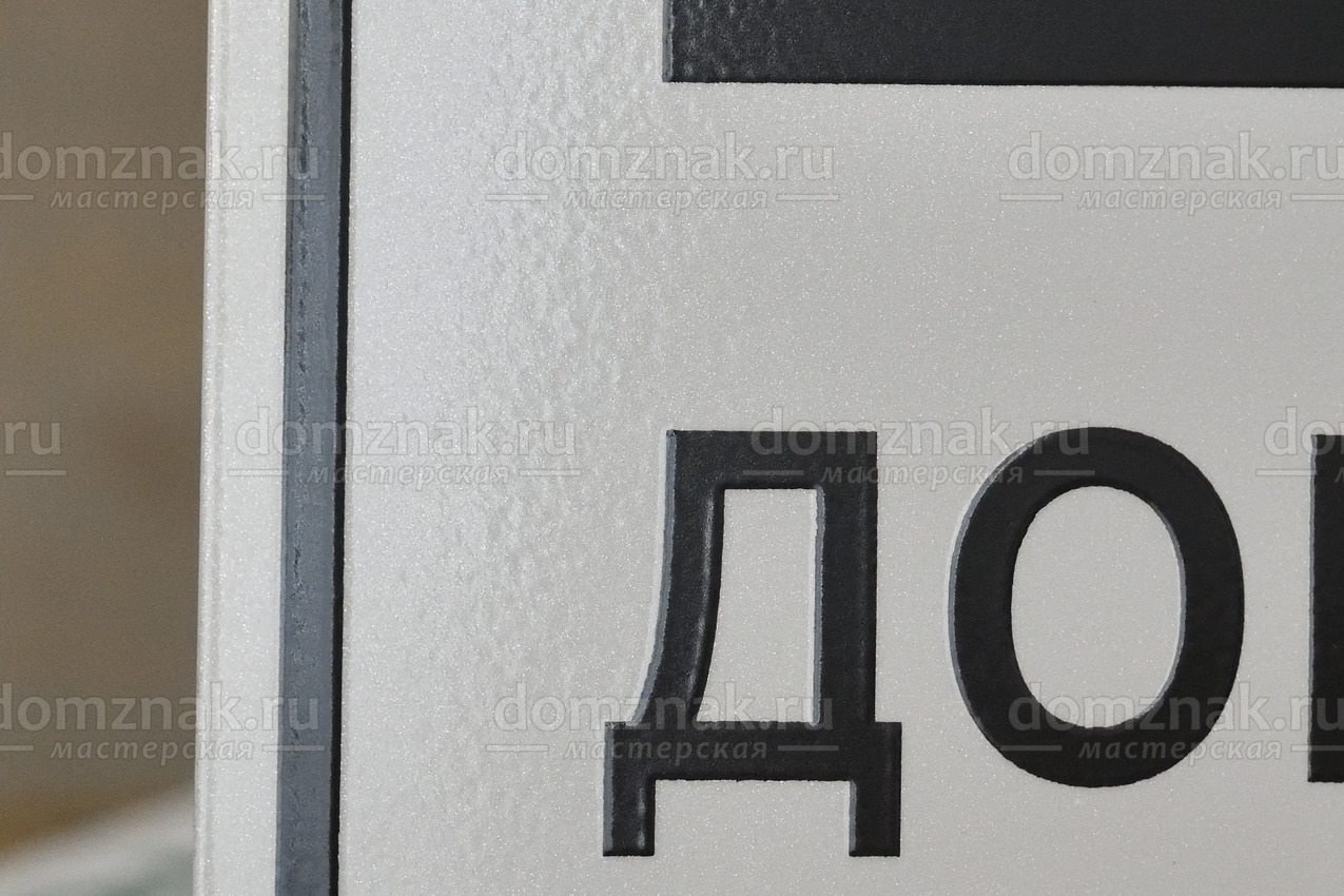 Дюраль – высокопрочного сплава на основе алюминия. Является основным конструкционным материалом в авиации и космонавтике. Материал идеально подходит для изготовления адресных табличек.